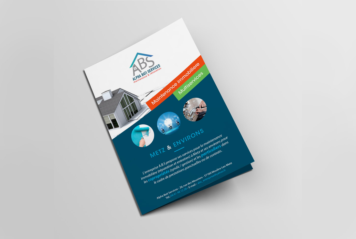 Un dépliant 2 volets pour une société du bâtiment dans la région de Metz (Moulins-les-Metz).