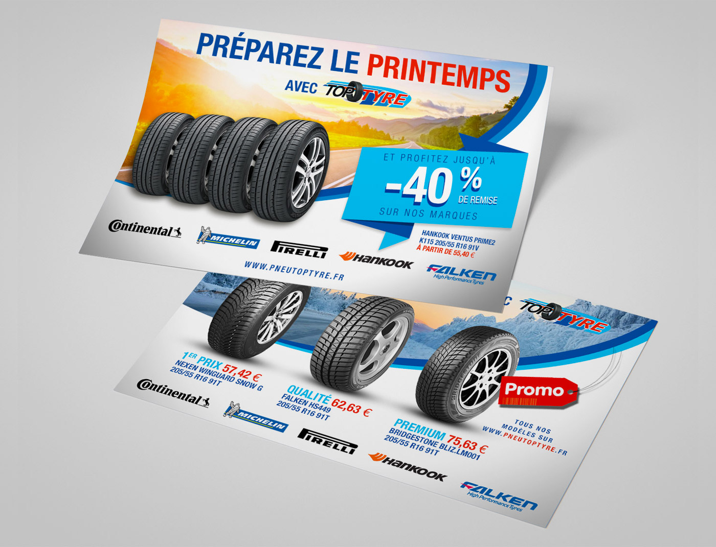 Un flyer recto verso promotionnel pour une société de vente en ligne de pneu, située dans la région de Metz.